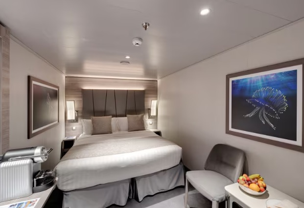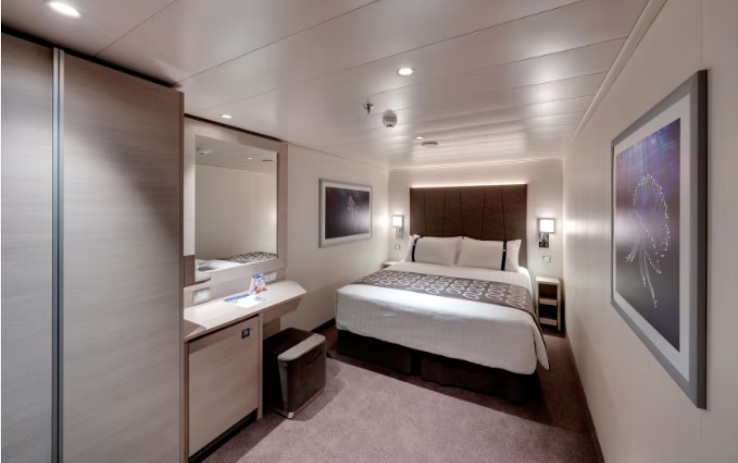 کابین داخلی بدون پنجره در بخش یات کلاب کشتی کروزMSC Euribia یک تخت بزرگ (قابل تبدیل به دو تخت یک نفره)، کمد لباس با فضای زیاد و سرویس بهداشتی با دوش دارد. این کابین حدود 15 متر مربع مساحت دارد.
