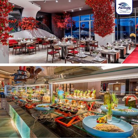 رستورانهای بینالمللی با منوی متنوع، کافههای ساحلی و بارهای لوکس در کنار خدمات ۲۴ ساعته، تجربهای تمامعیار از اقامت در یک هتل ۵ ستاره واقعی را رقم میزنند.